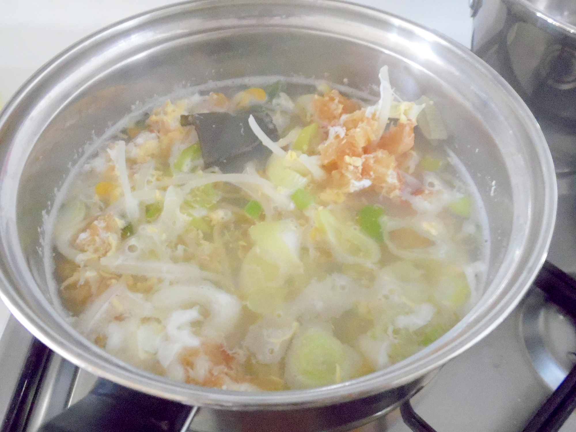 身体に染み渡る 干し鱈と豆もやしのスープ むくげの花